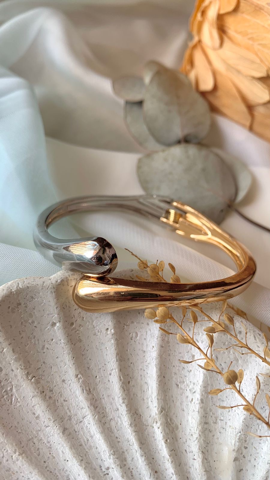 Bracelete gota em dois banhos de verniz italiano.