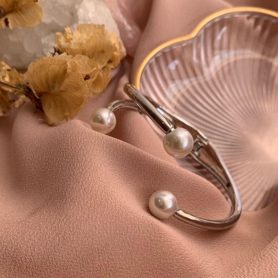 Este bracelete combina modernidade e sofisticação com suas três pérolas sintéticas, harmoniosamente dispostas sobre a base de metal. Um acessório versátil que agrega charme e delicadeza a qualquer look.