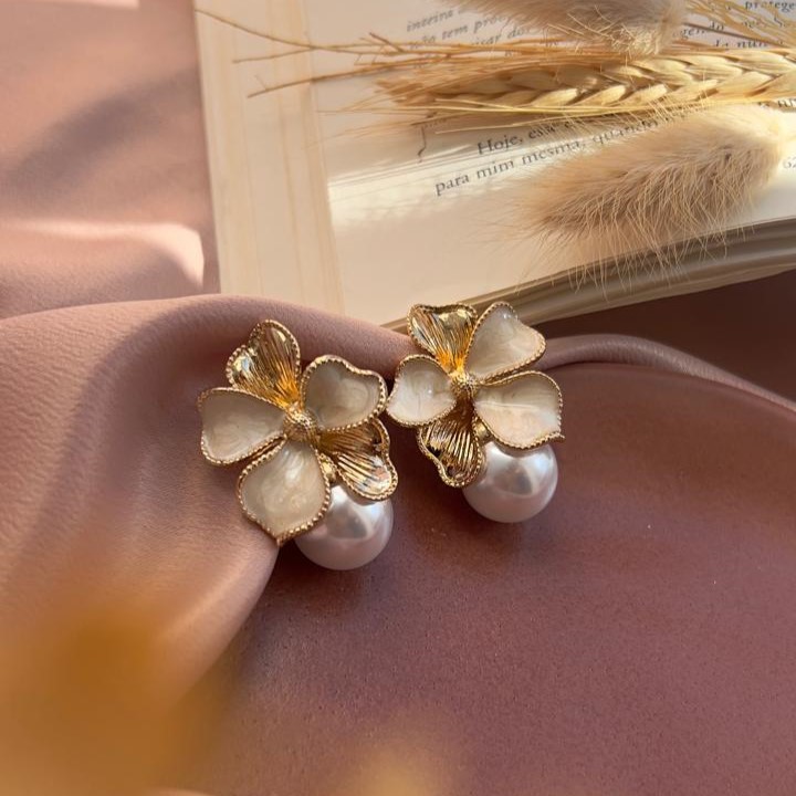 Conheça o par de Brinco Pérola & Flor, meticulosamente criado para exaltar a beleza e a elegância das flores.