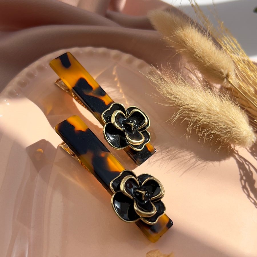 Não há outra flor que seja tão referência de Coco Chanel como as camélias! Por aqui, por sermos apaixonadas no estilo Chanel e na flor propriamente dita, as camélias estão sempre florescendo em nossas coleções, como é o caso dos novos bicos de pato. A peça - toda em metal - é esmaltada com cores sólidas e um contorno em dourado é feito em todas as pétalas.