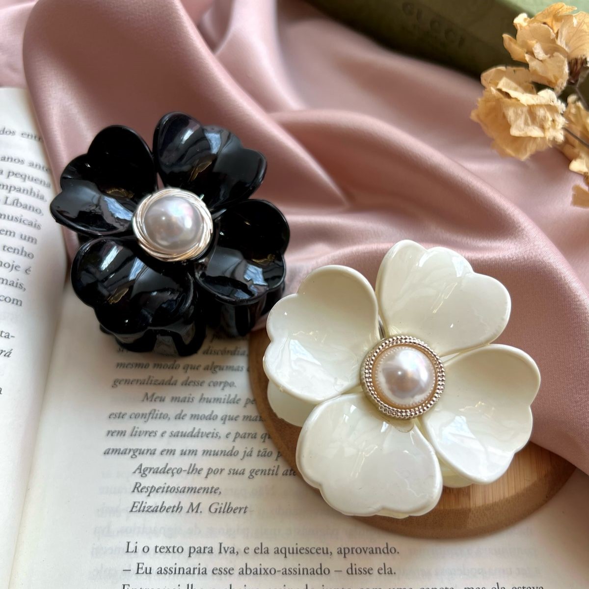 Essa presilha possui formato de flor com garras no meio para prender o cabelo de forma pratica.