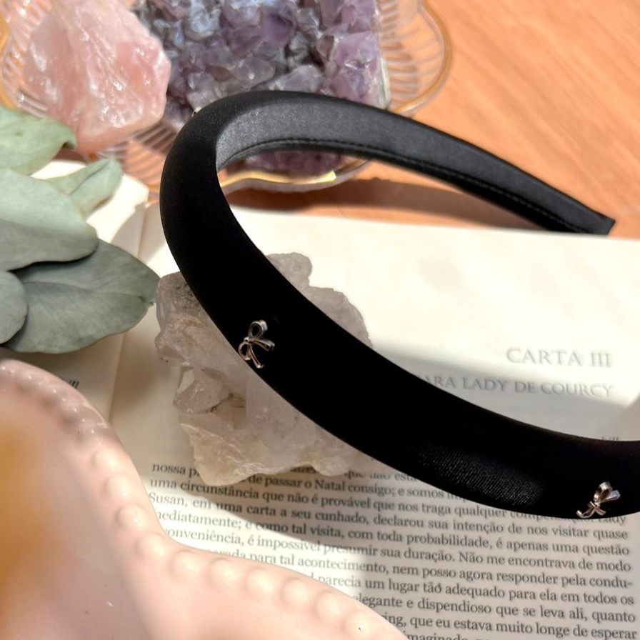 Poderia ser somente um arco revestido com cetim cristal? Poderia, mas tem muito mais graça com os laços aplicados! Super confortável, chic e delicada.